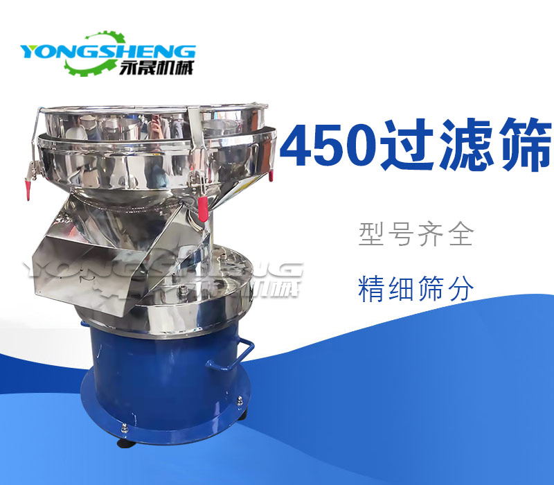 450过滤筛是一种便于移动、高效率、低噪音、小体积的小型振动筛分过滤筛。尤其适用于大颗粒含量的粉末筛分与浆液过滤;325目过滤比重1.1的喷漆料,每小时可达1200公升,30目筛分面粉每小时可处理700公斤。